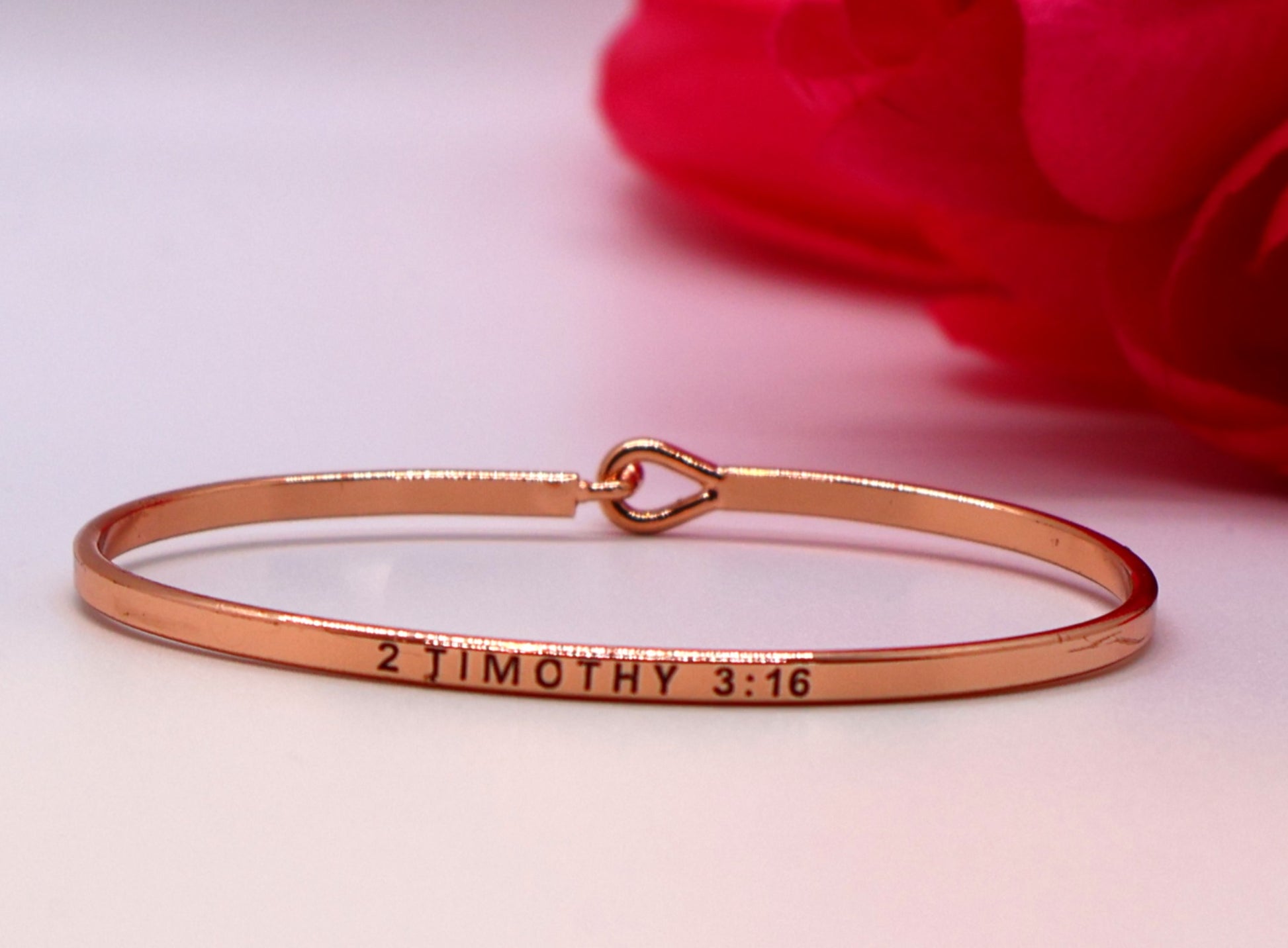 ⭐ "2 Timothy 3:16" engraved cuff bracelet.